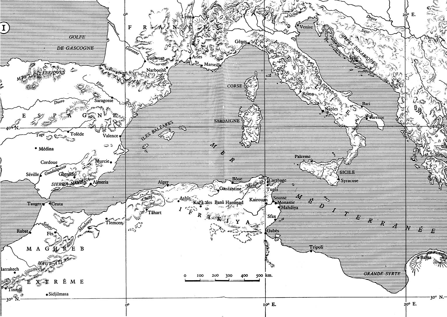La densité d’un réseau de voies commerciales tant maritimes que terrestres constitue sans doute l’un des aspects les plus frappants de l’organisation du monde islamique au Moyen Âge. Ces voies, qui furent selon les époques inégalement fréquentées en fonction de vicissitudes dont cette carte simplifiée ne saurait tenir compte, n’en suivirent pas moins toujours dans leur tracé quelques grands itinéraires imposés par des nécessités géographiques primordiales.